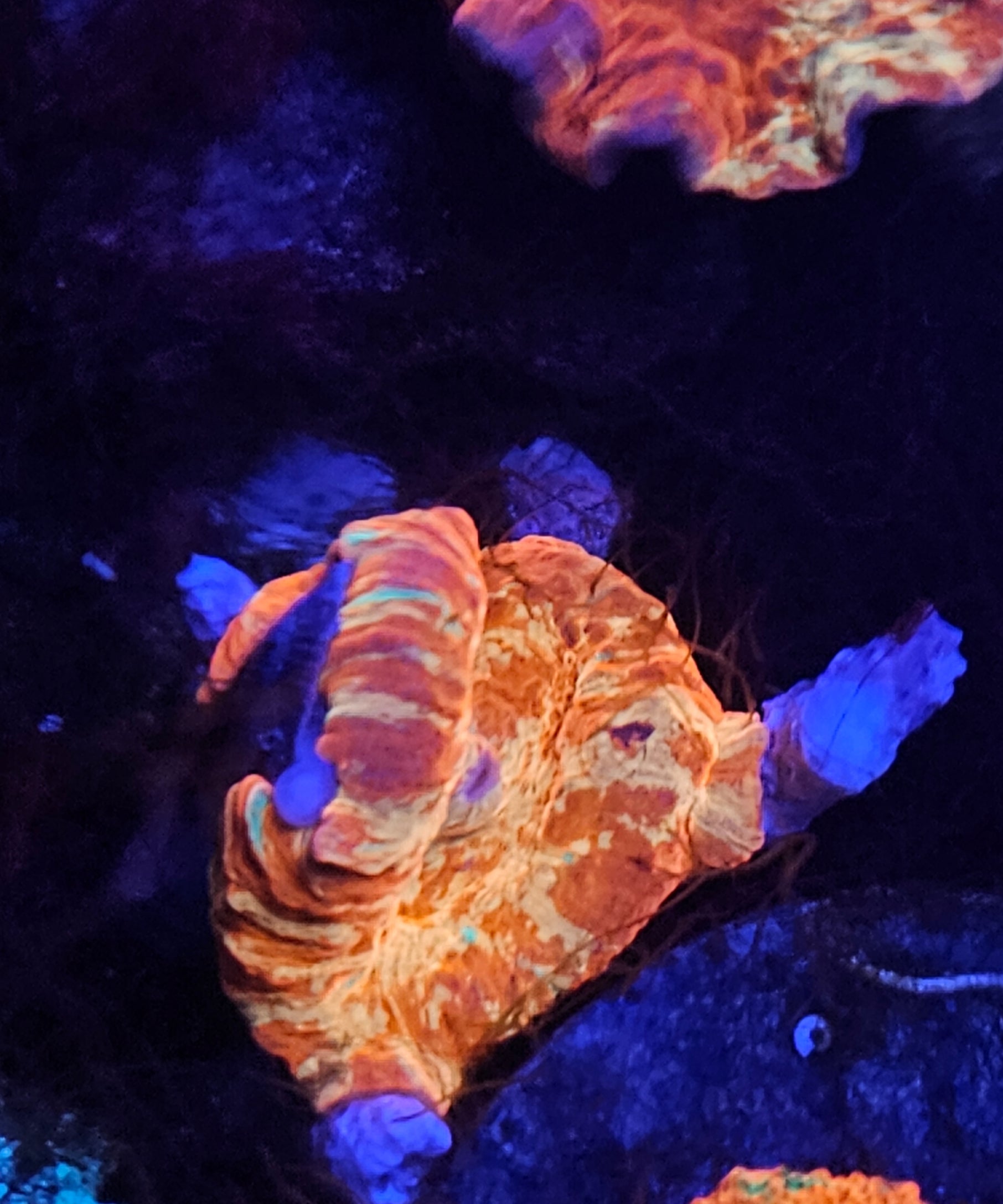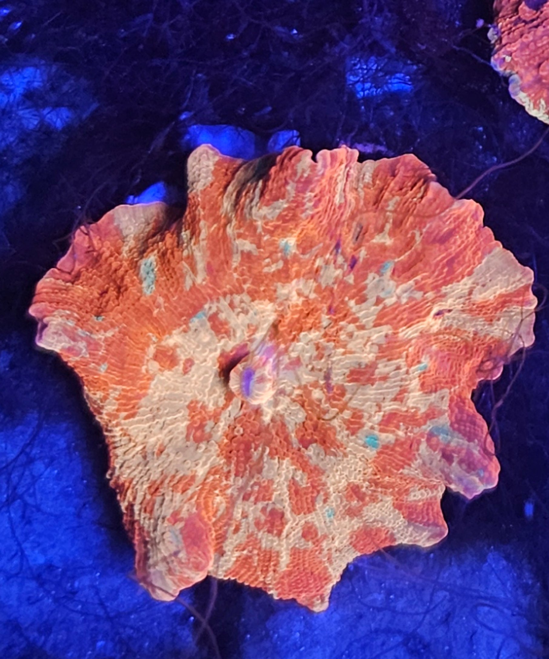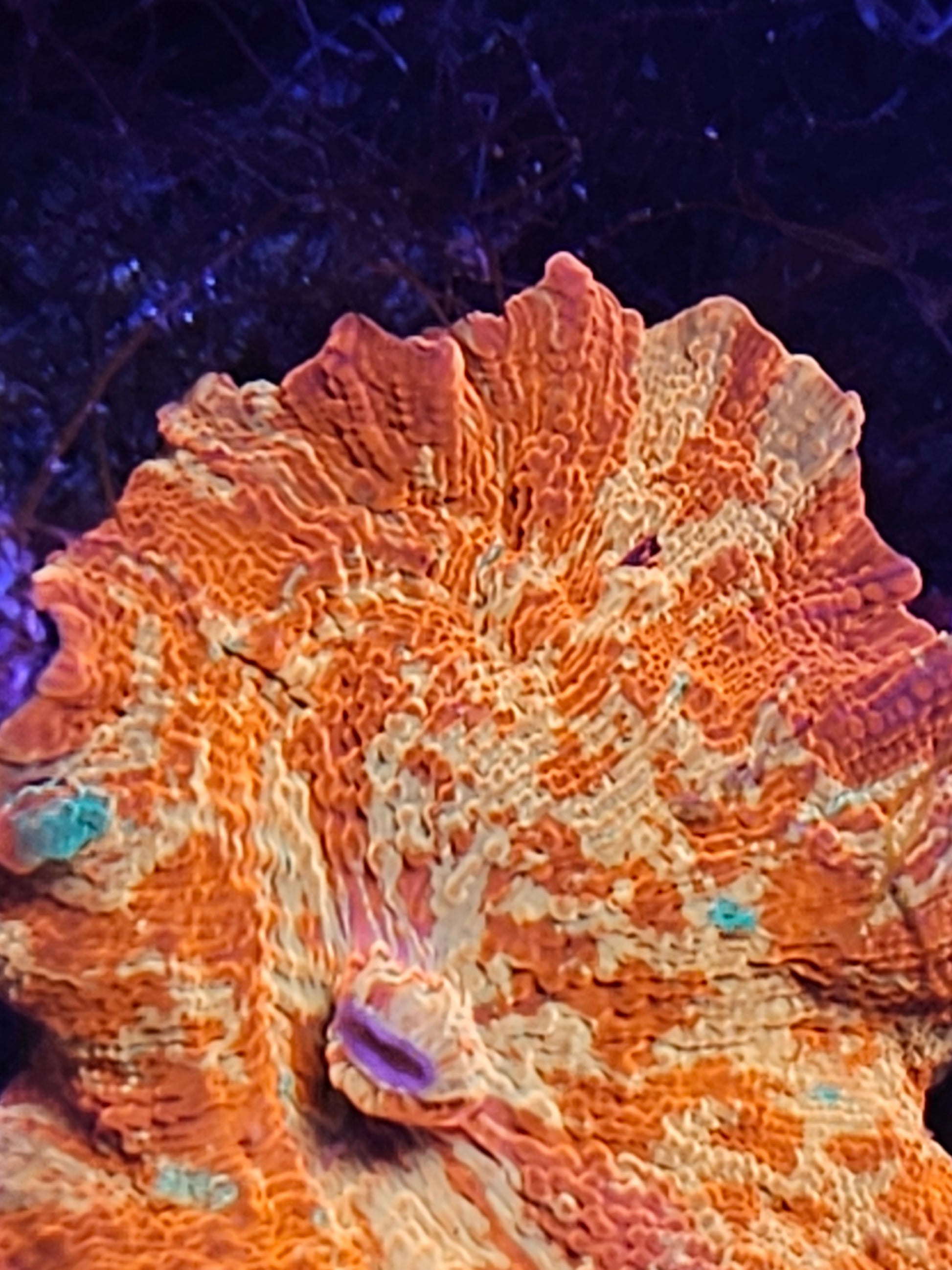 large around 2" has quite a few small purple spots, and a couple small purple stripes. it is getting more and more purple coming in. Nasty mushroom. i think you will be pleasantly surprised by it.